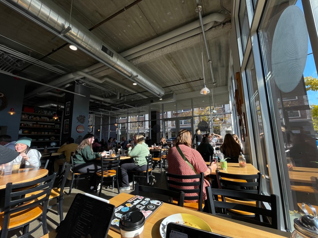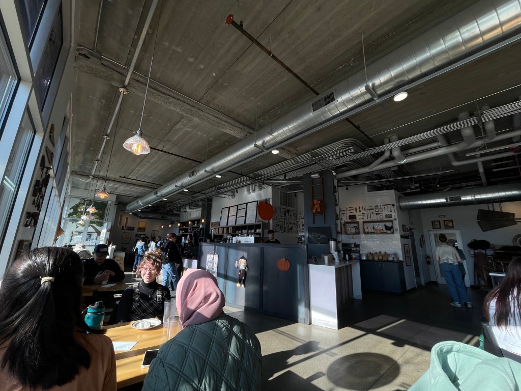 - Noah’s order: The overall coffee menu is limited. Under their “Signature Drinks,” they have Honeybee, Mila, Cuban, and SBR Seasonal Latte. I asked the barista what the seasonal latte was and it happened to be a pumpkin spice latte. She laughed as I did a poor job of hiding my cringe, while I nodded yes. “It’s pretty basic, but it’s good,” she said as we both silently acknowledged the stereotypes that surround the drink. Served in a paper cup and dusted with cinnamon, the presentation was not flashy. There was an initial hit of cinnamon, as it was sitting right on top. The texture was fine, with thinner whole milk as the majority and a bad of foam on top, more fitting to the construction of a cappuccino, but I am a coffee snob, so I digress. It was not overly sweet, which is sometimes rare when every cafe in North America adds a PSL to their menu as September comes to a close to cater to the Instagram enthralled basic crowd. In general, it was fine! Scenic Route has their cold drinks served in plastic cups with plastic straws. All of this fits in with the overall theme of the place: it is practical. This is a practical space to work, take a lunch break, or meet with someone in a comfortable public space.