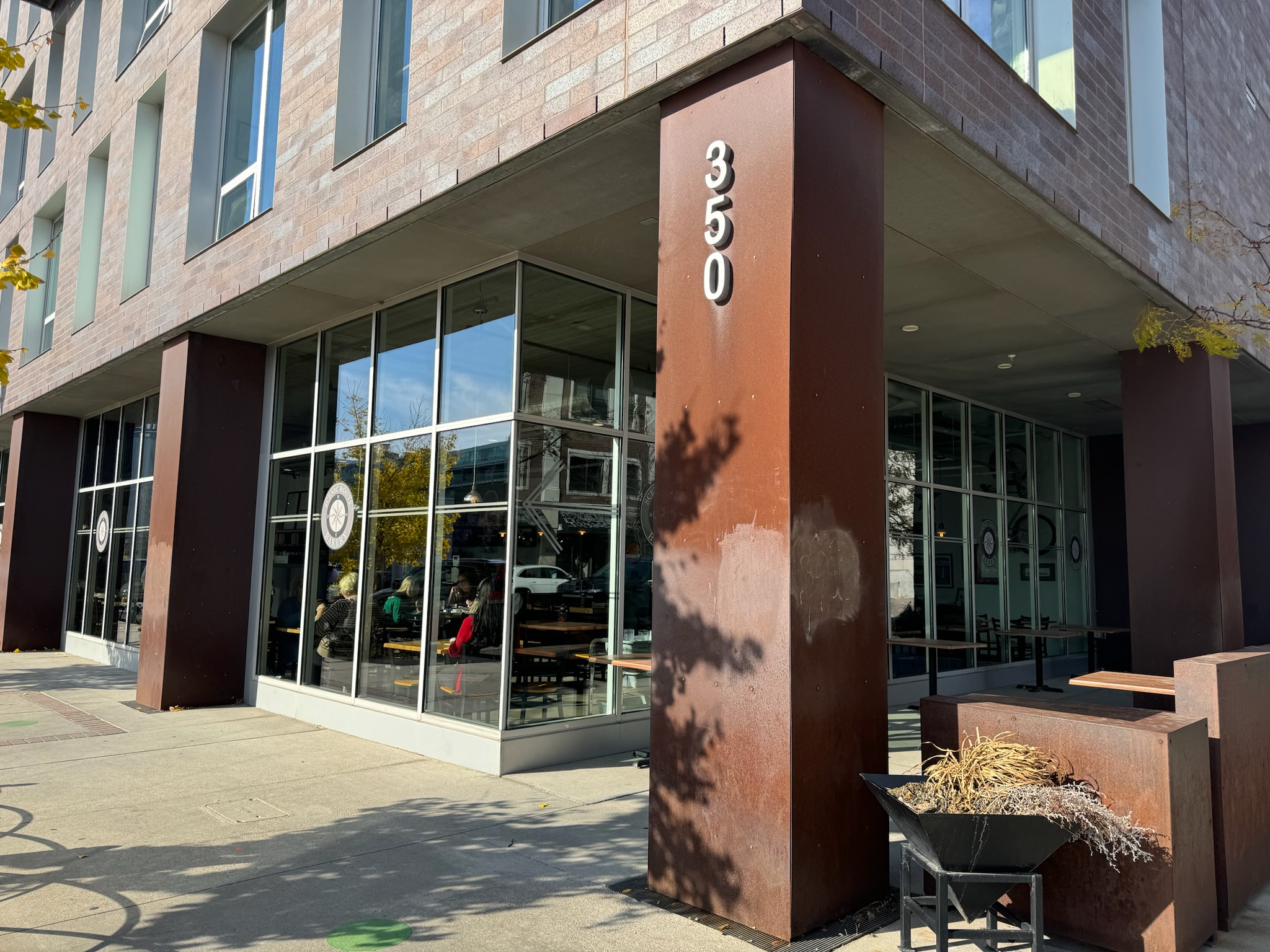 - As a coffee review website, it may seem odd that I’m taking the time to review a bakery. However, Scenic Route’s overall offerings put it in line with your average cafe. Located in Des Moines’ historic east village on the corner of Locust and E 4th, Scenic Route is surrounded by many quaint shops selling clothing, home goods, plants and furniture. The atmosphere of Scenic Route is very open and bright, with floor to ceiling windows on two sides of the space. Wooden tables with metal chairs and wood seats are practical and clean. The exposed concrete ceiling with the HVAC and metal conduit for lighting is in line with much of the east village aesthetic. This may come off as cold, but the warm lighting and lively atmosphere balance it quite nicely. As I am making my visit here in late September, there is fall decor all around.